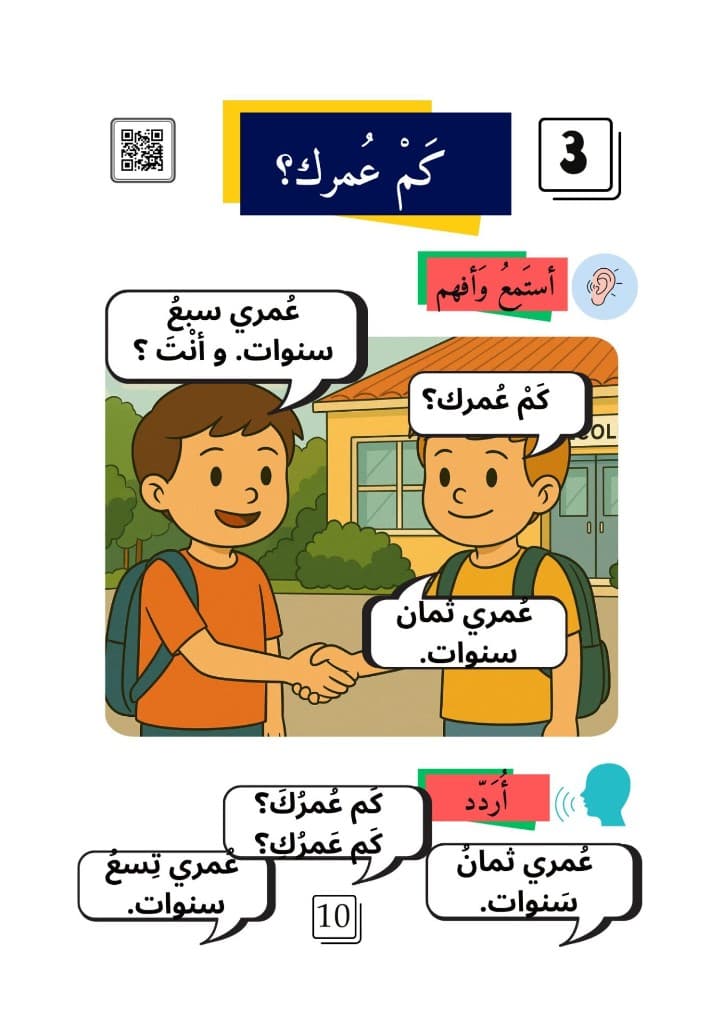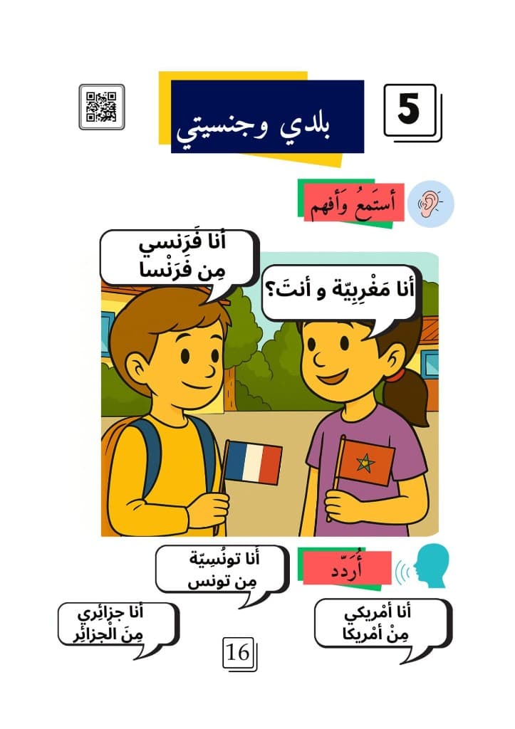 Formation gratuite en arabe (langue standard / arabe moderne), pensée pour les francophones : vous travaillez l’arabe structuré à travers huit leçons progressives — présentation, âge, origine, nationalité, ville, famille, couleurs et animal préféré. Ouvrez chaque leçon ci-dessous dans l’ordre.
